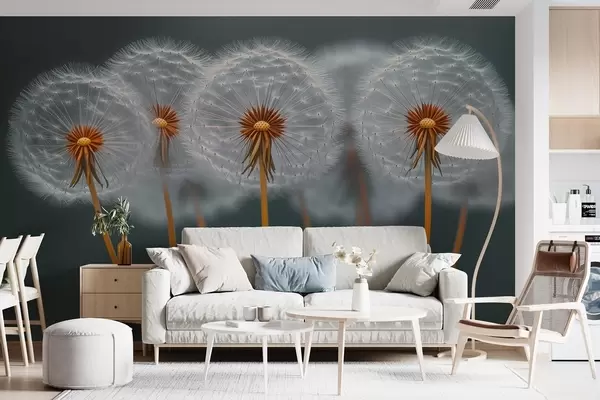 Carta da parati Denti di leone ariosi su uno sfondo naturale scuro nr. w08498