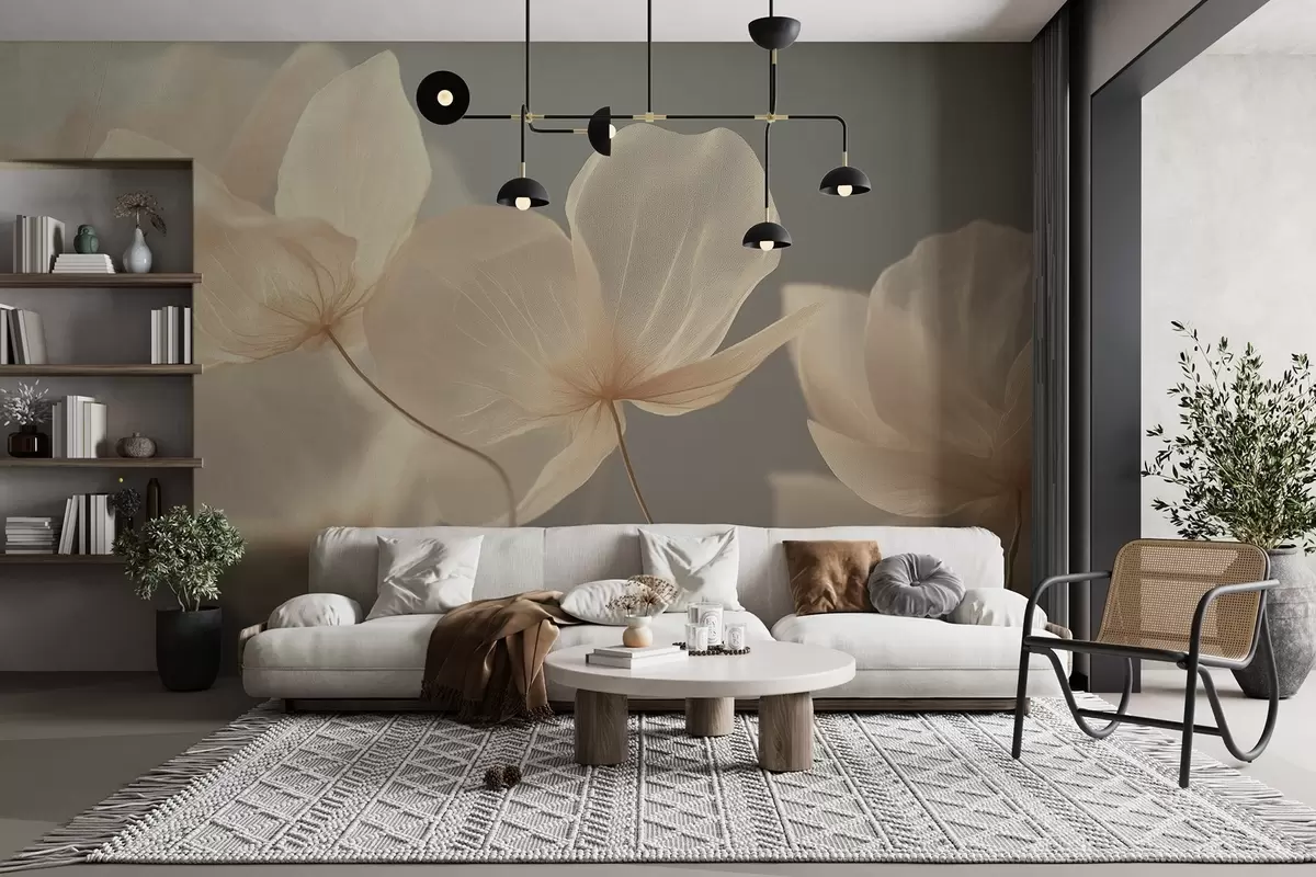 Carta da parati Petali di loto, una composizione delicata con sfondo grigio nr. w08500v2