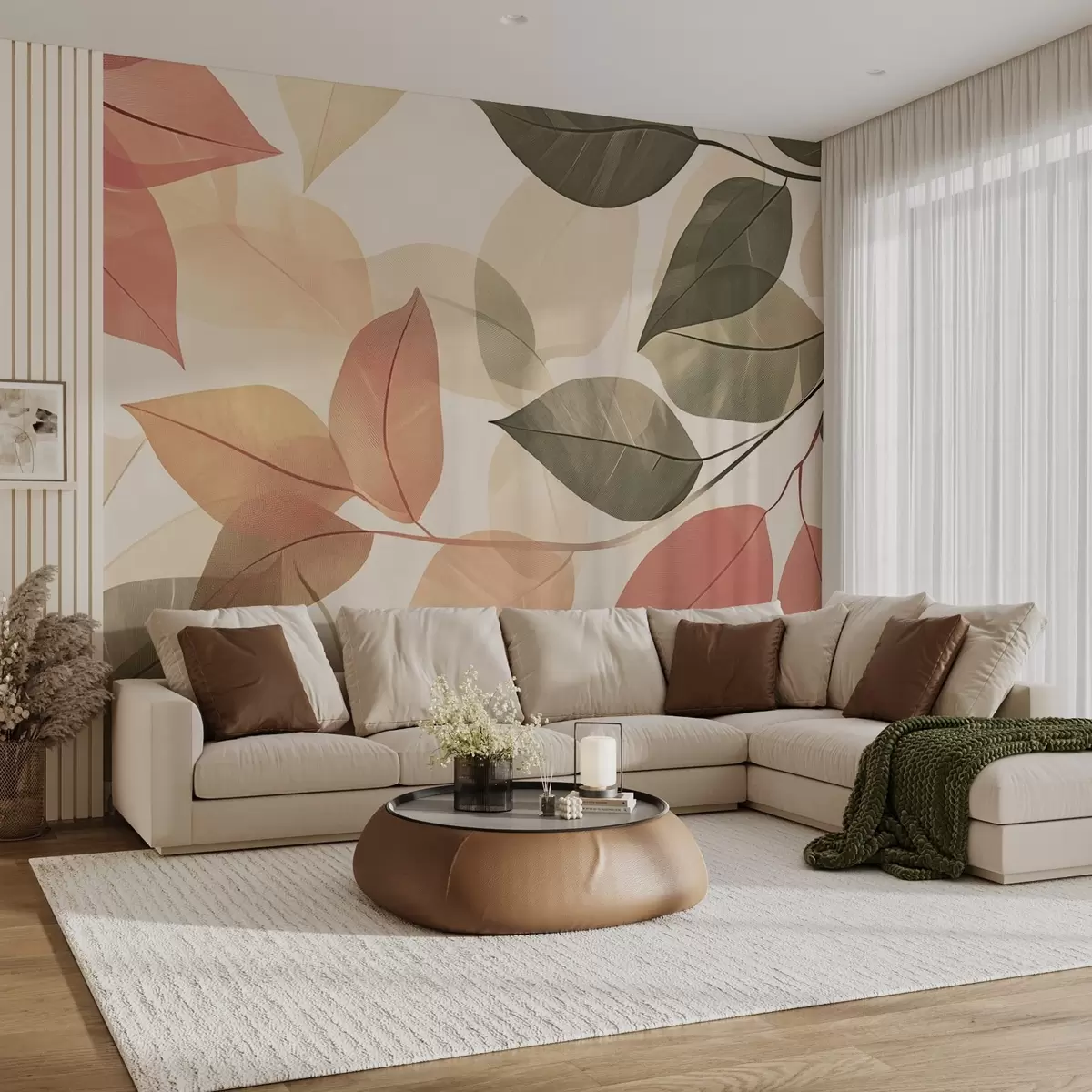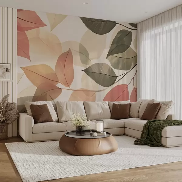 Carta da parati Rami di foglie nei toni del rosso e del verde nr. w08502