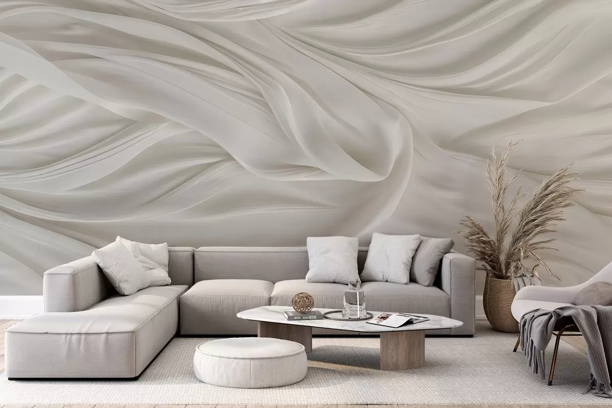 Carta da parati Stampa moderna con imitazione di un tessuto bianco liscio e fluente, con pieghe morbide e svolazzanti nr. w08537