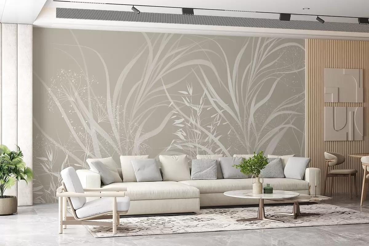 Carta da parati Delicata e moderna stampa floreale minimalista bianca su sfondo beige pastello chiaro nr. w08583