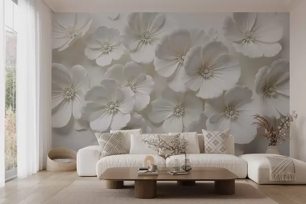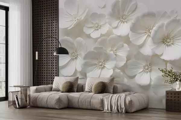 Carta da parati Fiori bianchi con petali e centri delicati su uno sfondo chiaro nr. w08587