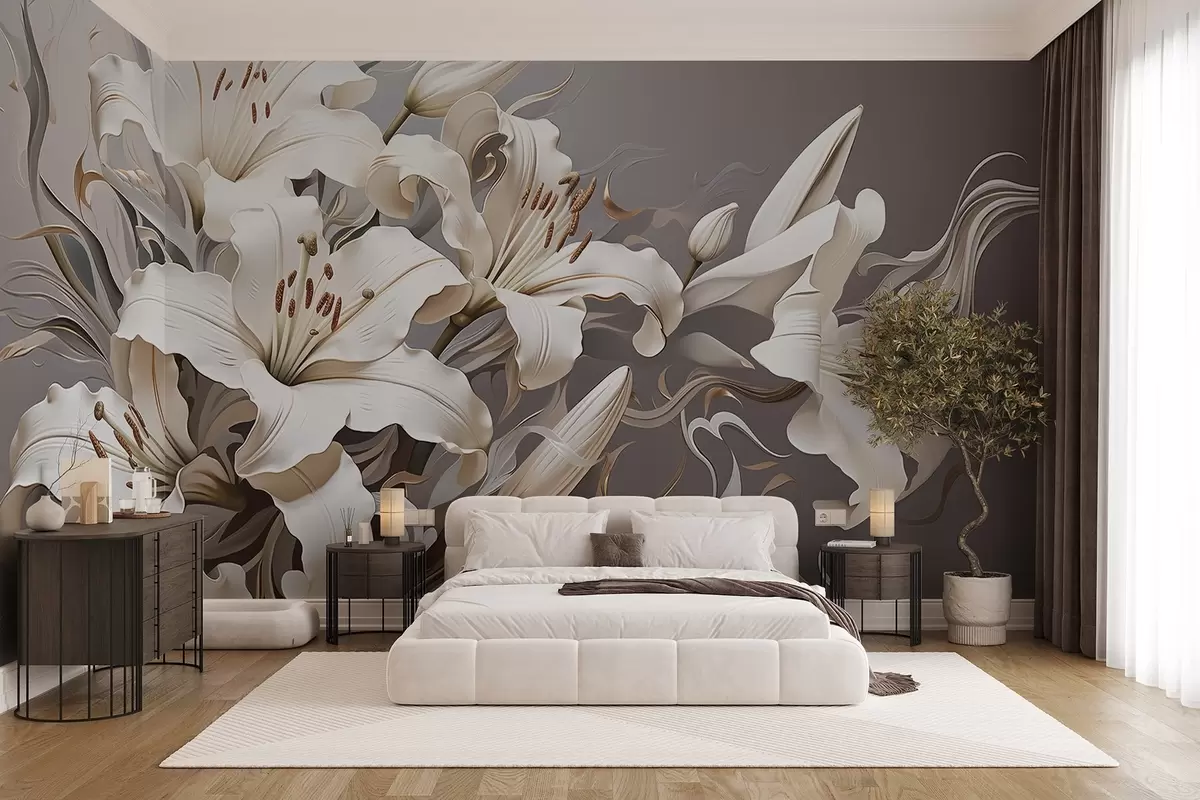 Carta da parati Sofisticati gigli bianchi in tonalità pastello nr. w08633v1