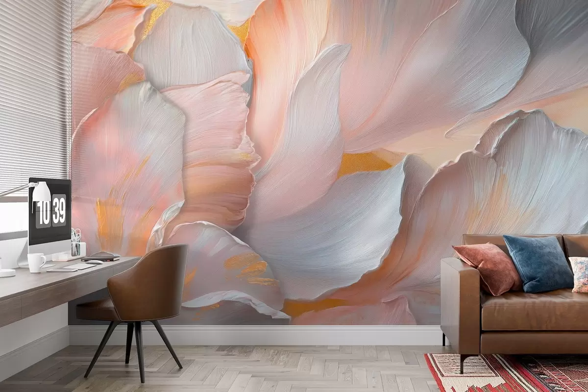 Carta da parati Voluminose foglie di fiori dai toni delicati nr. w08634