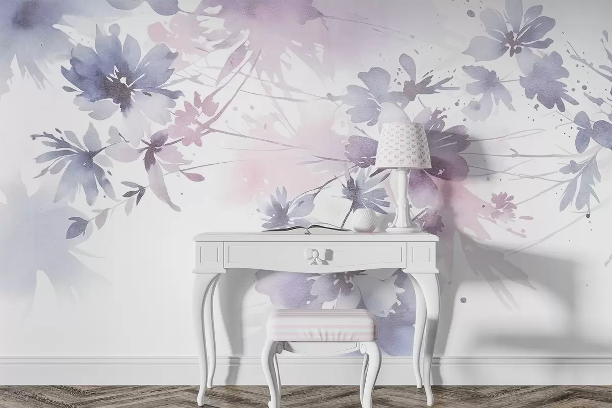 Carta da parati Fiori astratti e morbidi dai colori pastello con sfondi sfocati, che creano un'atmosfera sognante ed eterea nr. w08645
