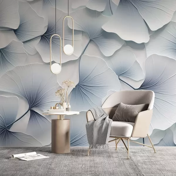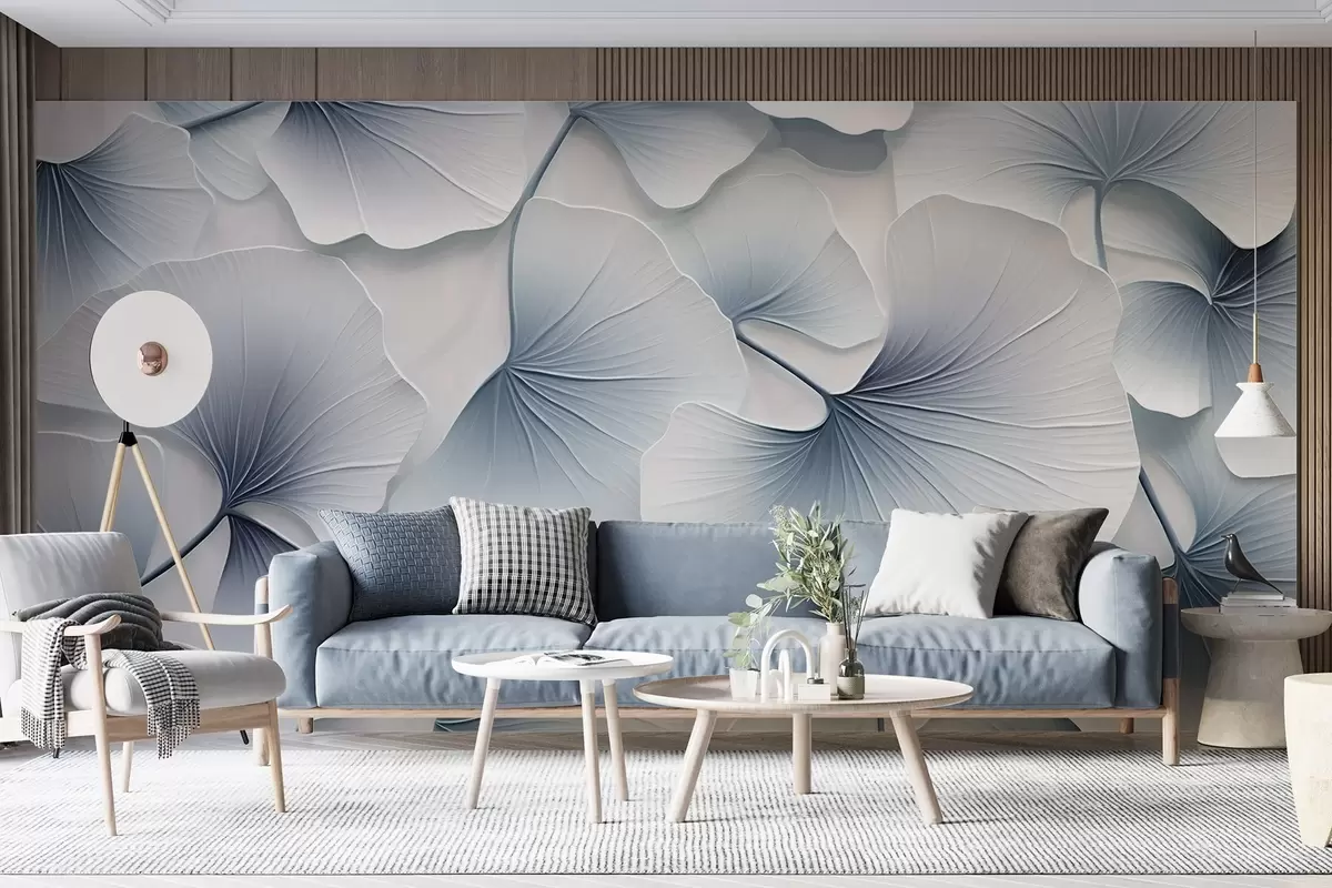 Carta da parati Foglie di ginkgo azzurro con sfumature morbide e venature delicate, sovrapposte l'una all'altra nr. w08666