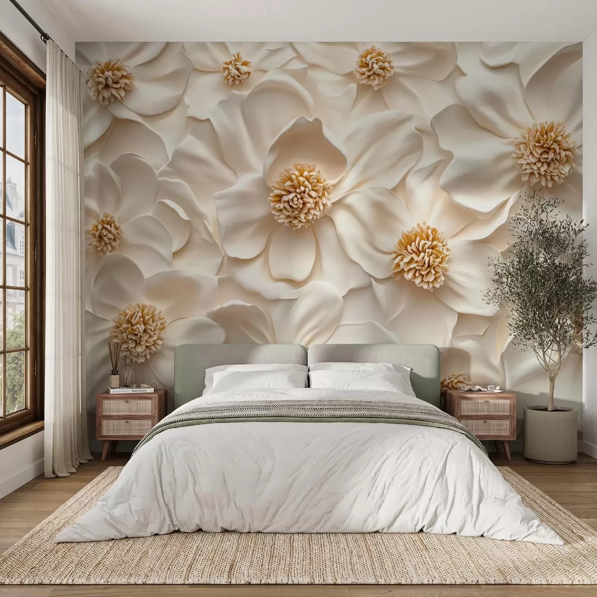 Carta da parati composizione floreale 3D beige con accenti gialli nr. w08691
