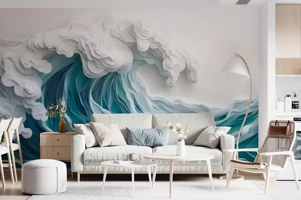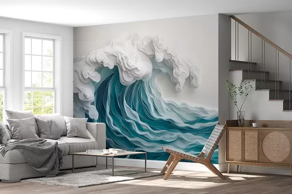 Carta da parati Onda oceanica spumeggiante in stile paper-cut nr. w08694