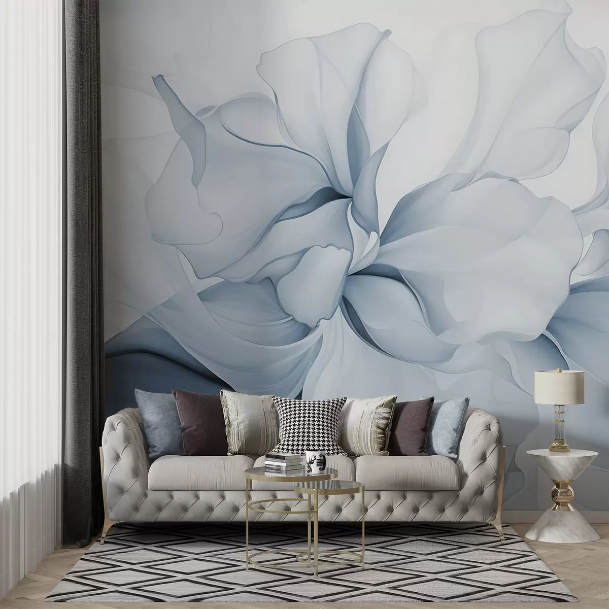 Carta da parati Flussi di petali floreali astratti traslucidi e forme stratificate in colori pastello, nelle tonalità del blu nr. w08701v2