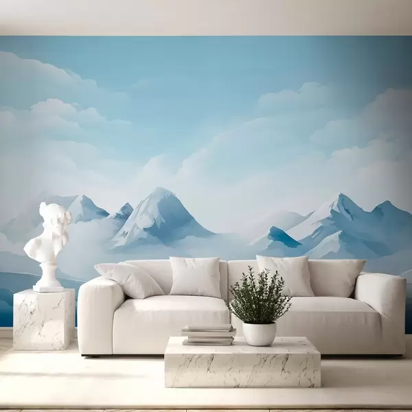 Carta da parati Nuvole e montagne blu minimaliste, tempo gelido nr. w08811