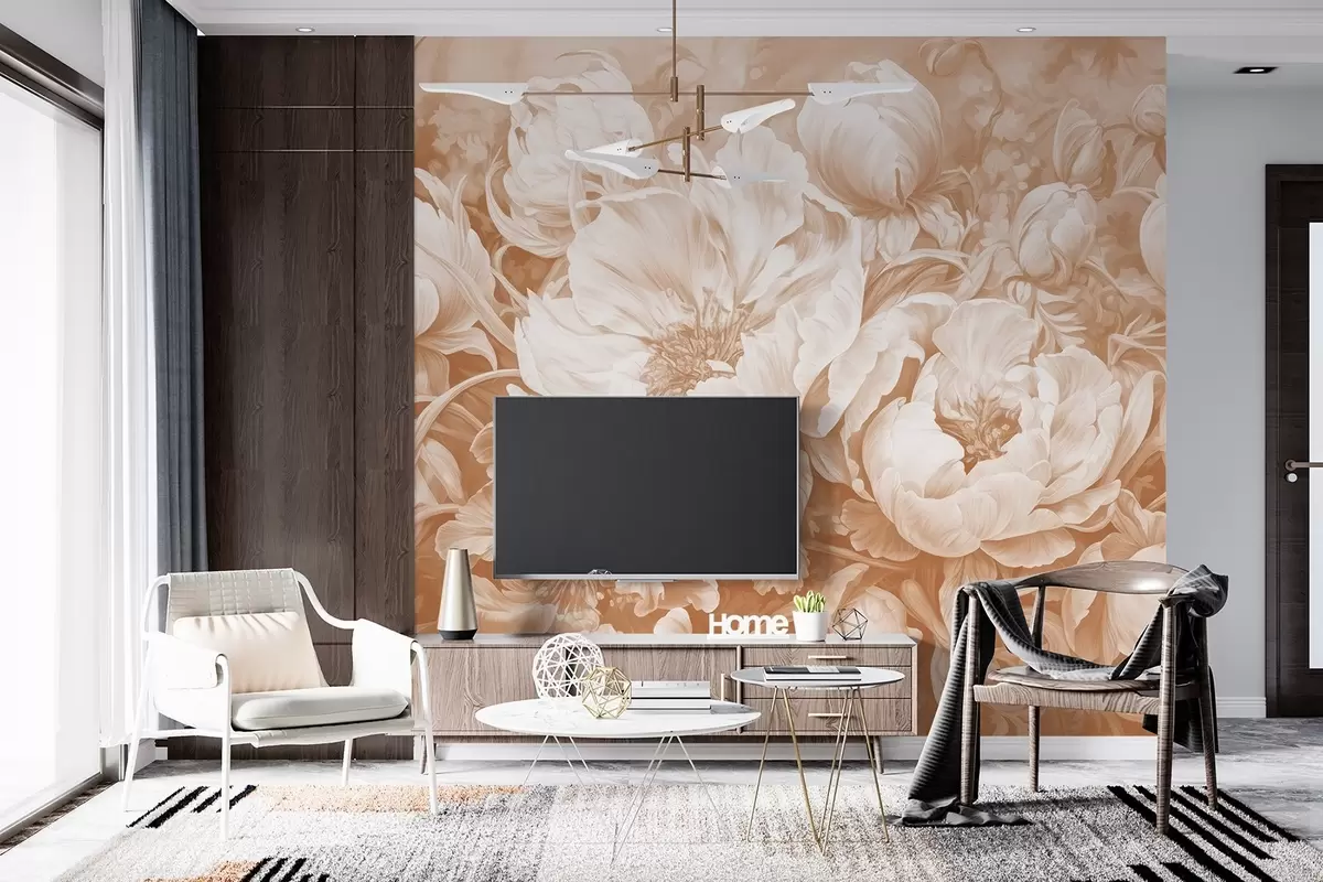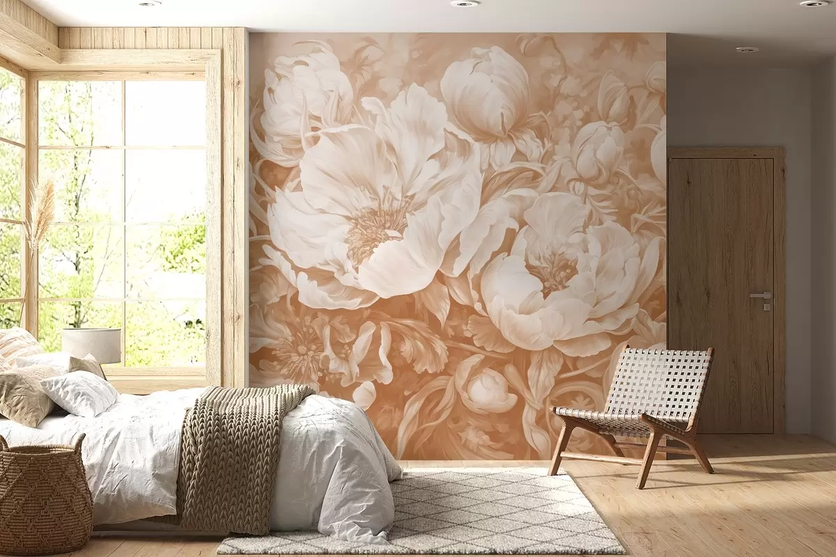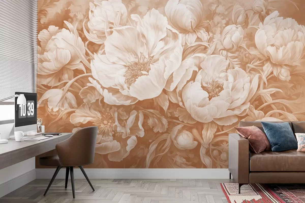 Carta da parati Tulipani e peonie, composizione floreale in stile pennellata ad olio beige nr. w08817v1