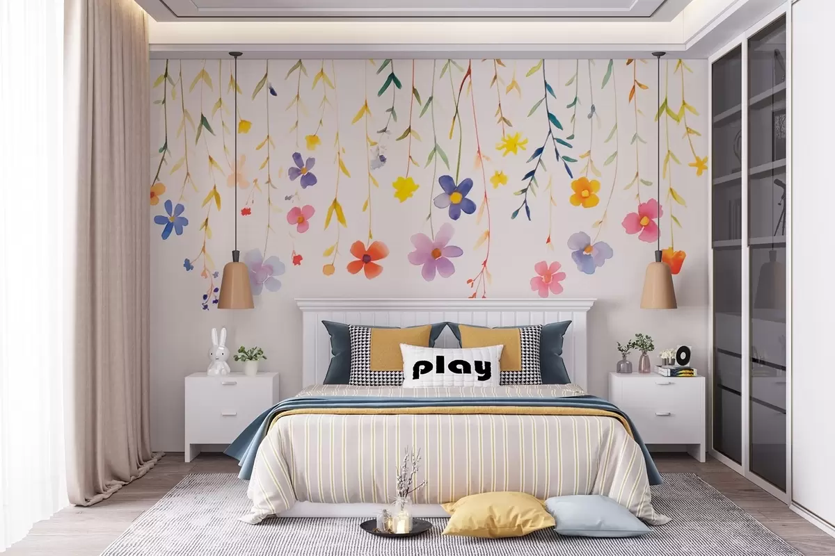 Carta da parati Fiori di campo in stile acquerello, semplici e colorati nr. w08851