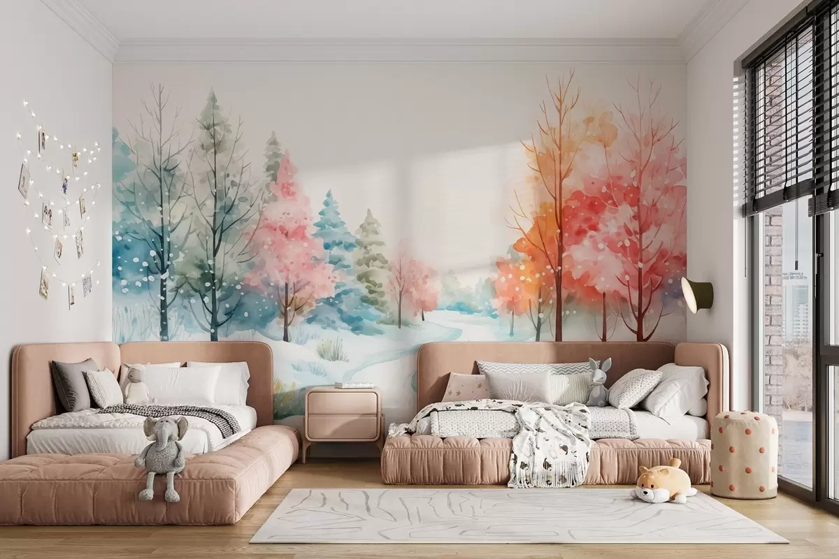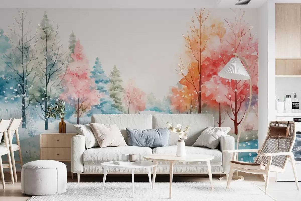Carta da parati Una vivace foresta invernale in stile acquerello nr. w08856