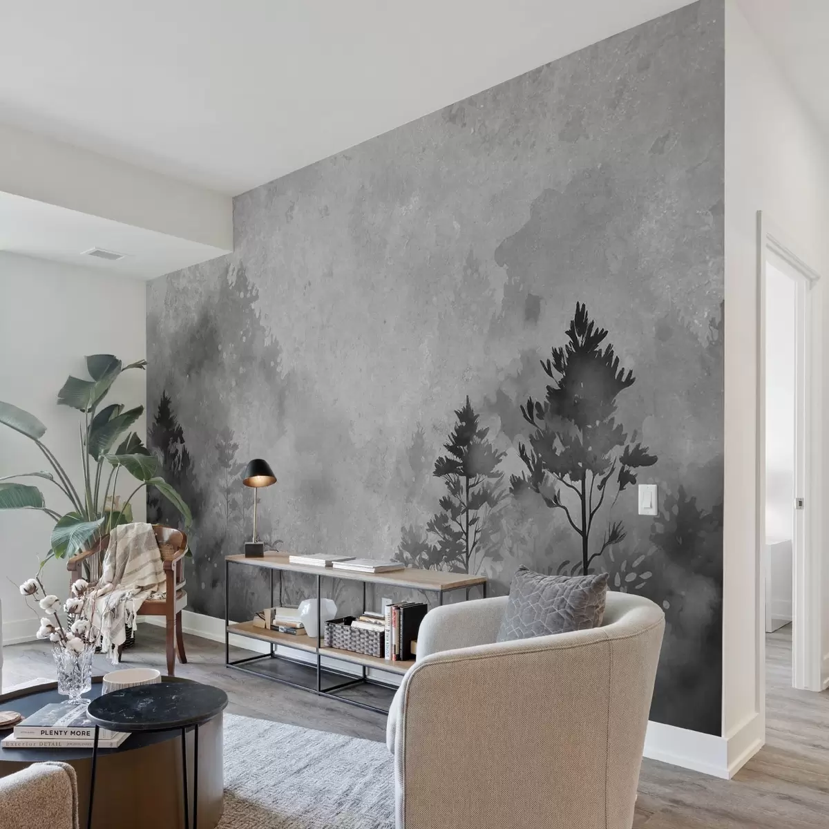 Carta da parati Foresta, imitazione dell'acquerello in bianco e nero nr. w08862v1