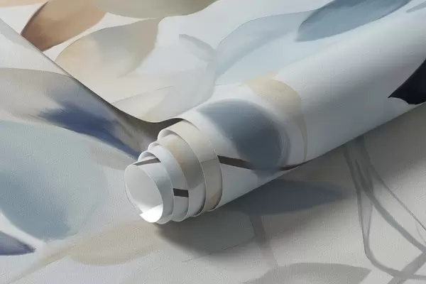 Carta da parati Rami con foglie nei toni del blu e del marrone, sfondo chiaro, morbido e delicato, stile acquerello nr. w08900