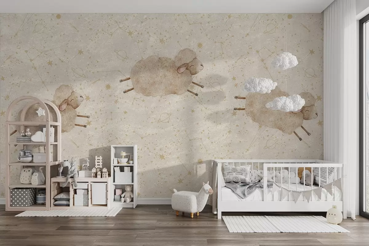 Carta da parati Pecore che saltano su uno sfondo stellato nr. w08930