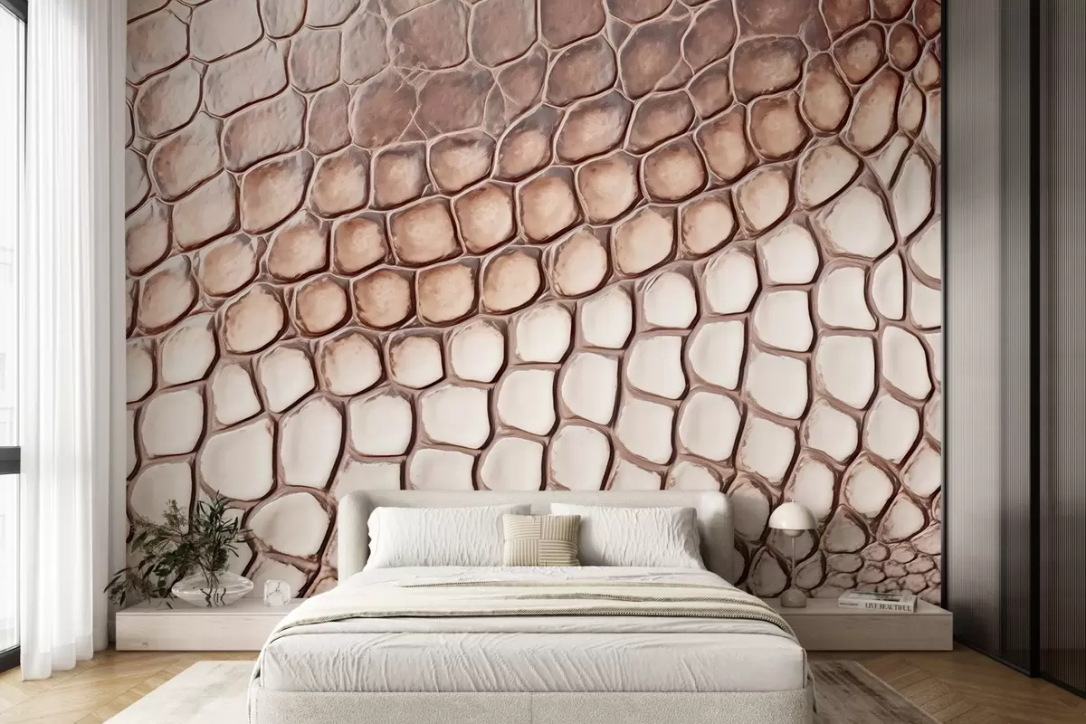 Carta da parati Pelle di rettile bianco-marrone, motivo a squame nr. w08957