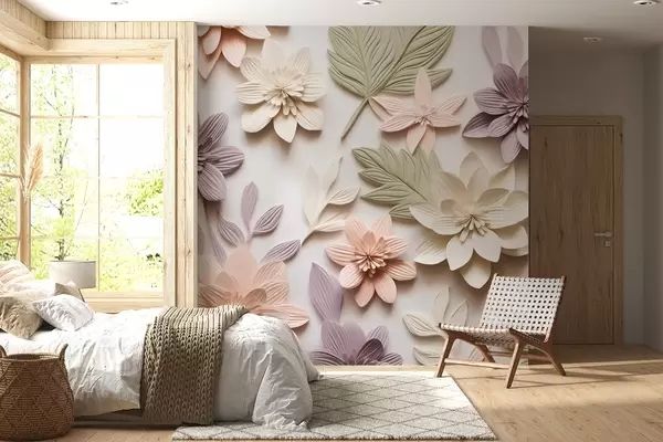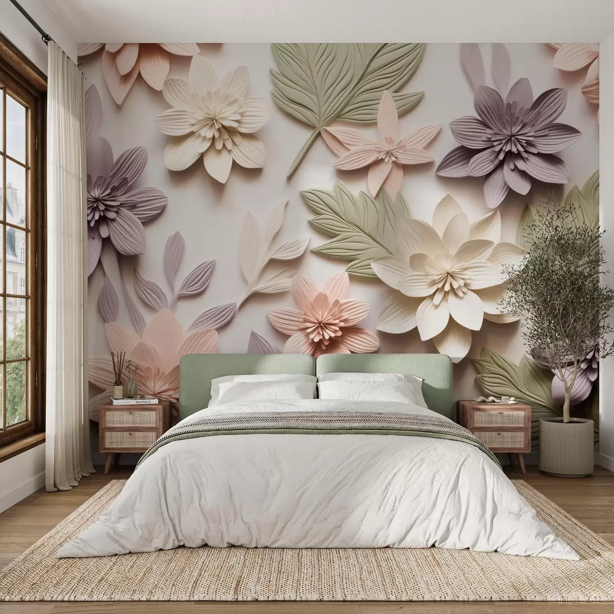 Carta da parati rilievo floreale 3D in forma di composizione cartacea nr. w08958