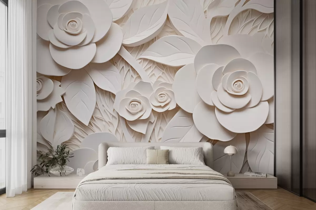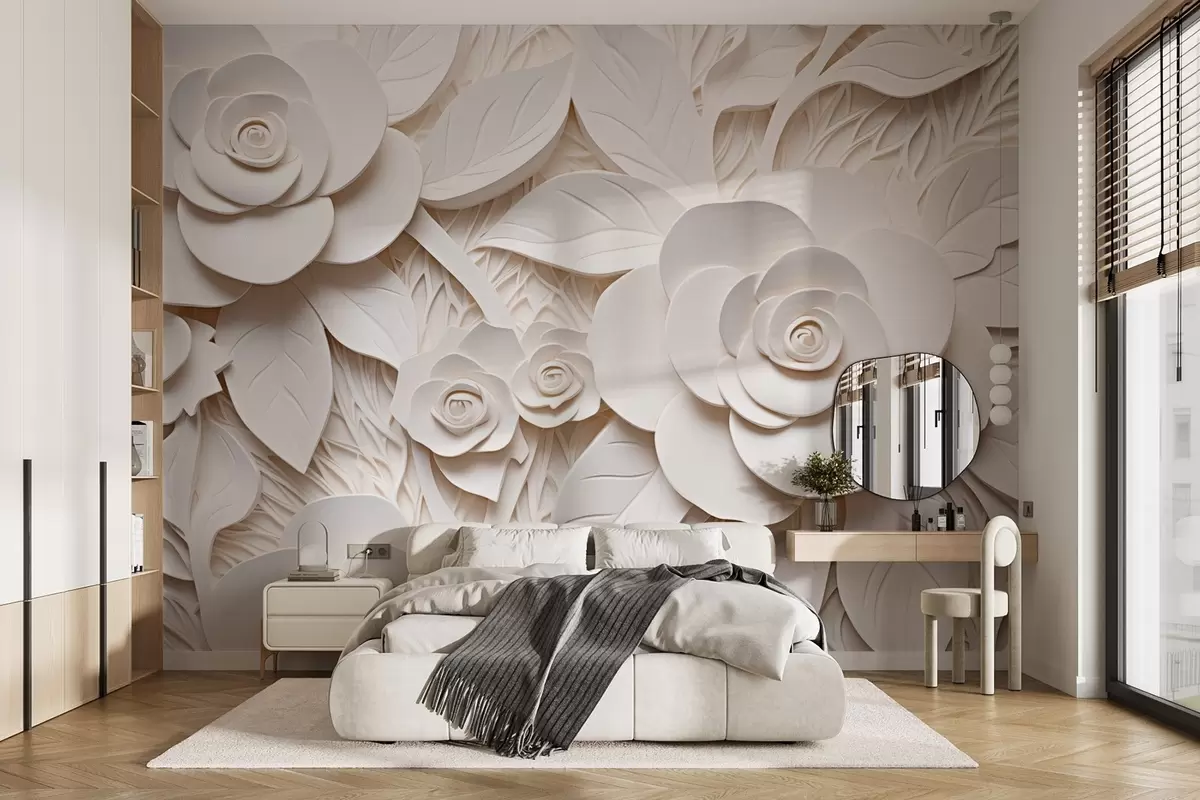 Carta da parati rose volumetriche bianche 3D nr. w08963