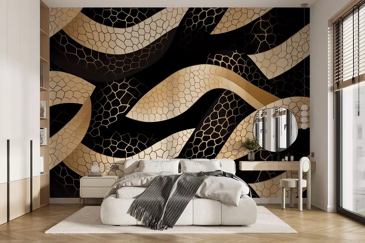Carta da parati Motivo intrecciato beige-nero nr. w08964