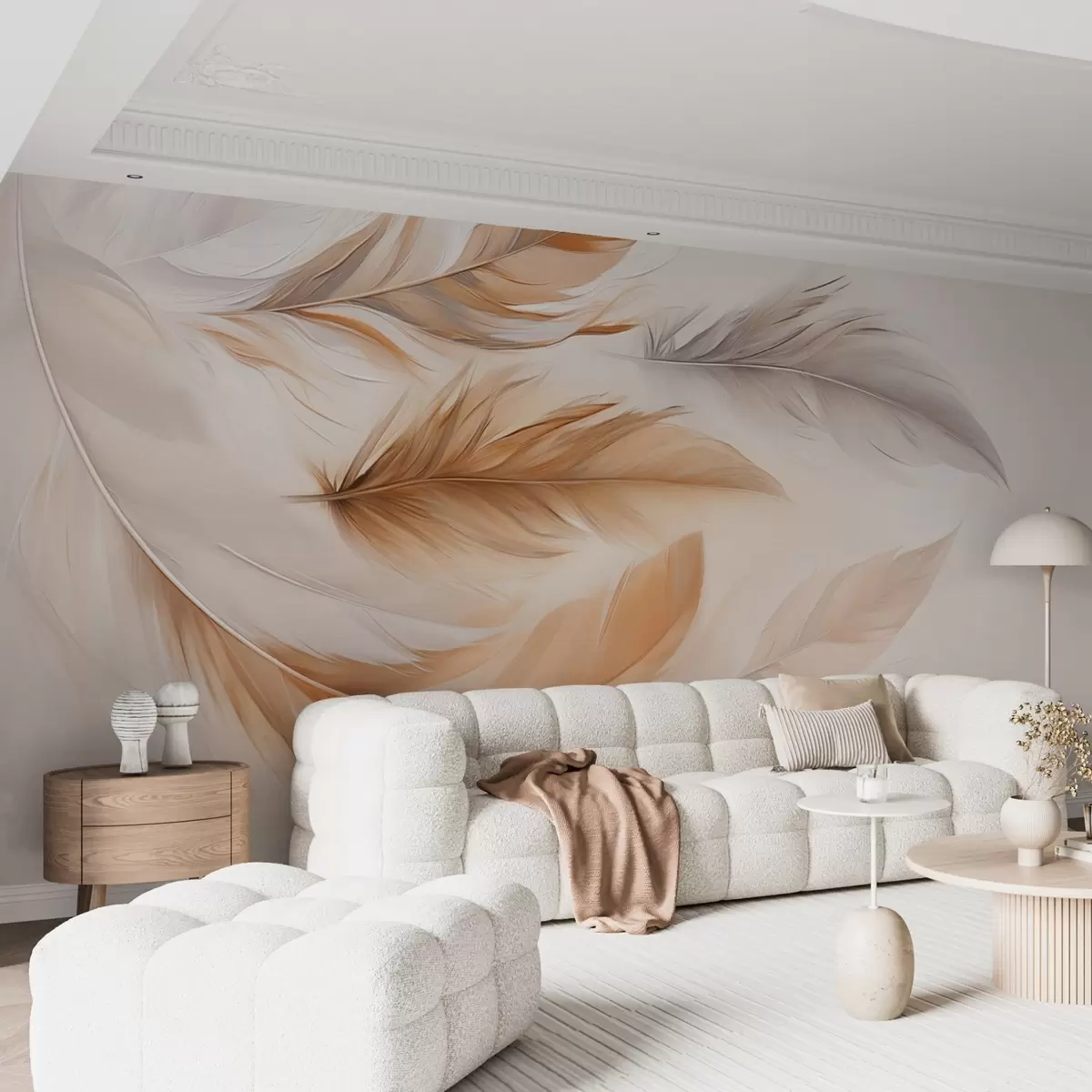 Carta da parati Piume fluttuanti e ariose di colore grigio-marrone nr. w08968