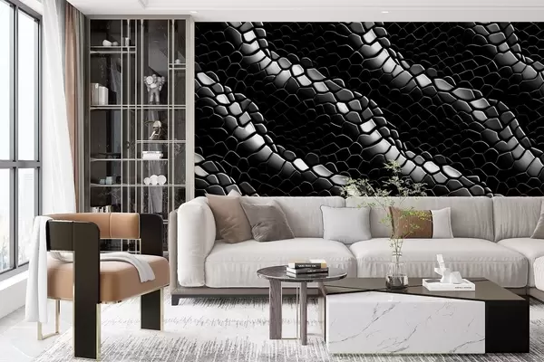Carta da parati Onde in bianco e nero nella texture della pelle di serpente nr. w08995