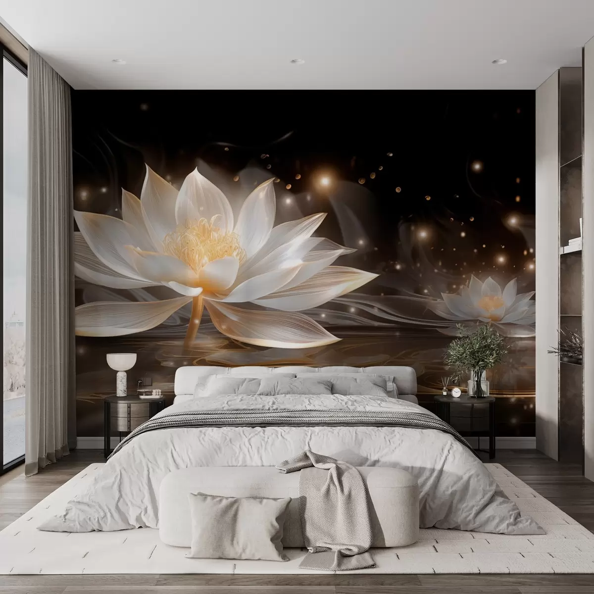 Carta da parati Eleganti ninfee bianche su acqua scura nr. w09021