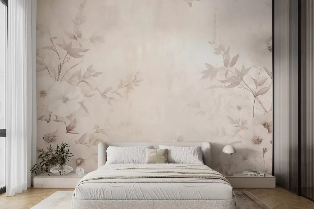 Carta da parati Fiori con foglie in tonalità neutre e chiare in stile acquerello nr. w09040