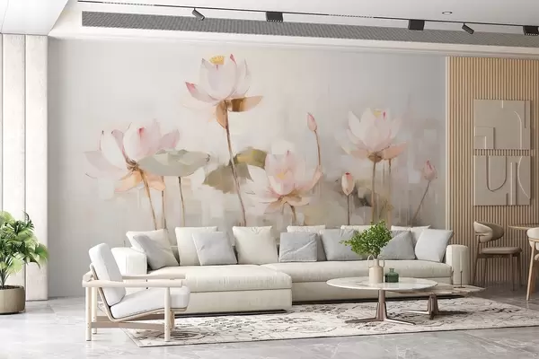 Carta da parati Delicati fiori di loto dipinti con acrilico nr. w09067