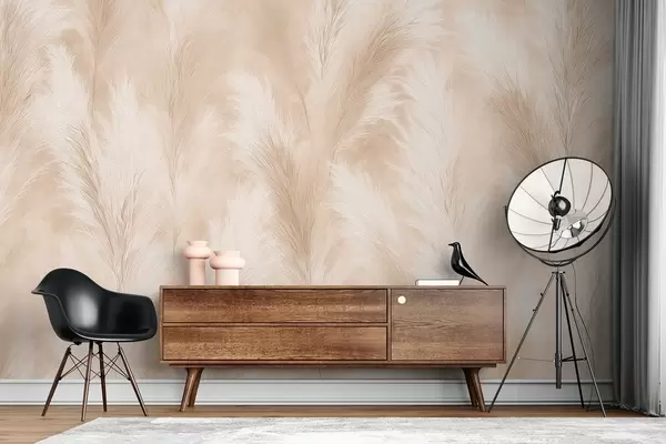 Carta da parati Erba della pampa nei toni del beige e del rosa nr. w09077