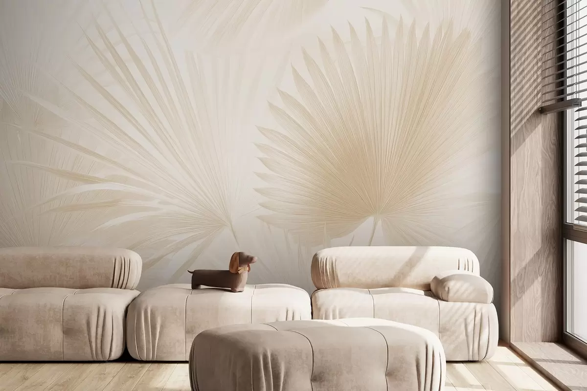Carta da parati Morbidi ventagli di foglie tropicali su uno sfondo chiaro nr. w09084v1