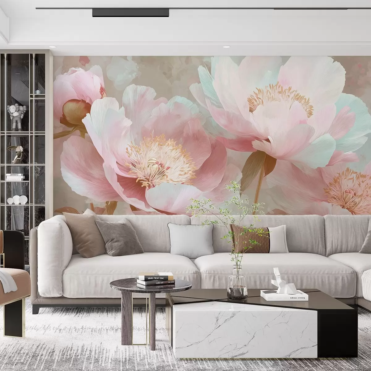 Carta da parati Delicate peonie nei toni del rosa e del beige nr. w09087v1