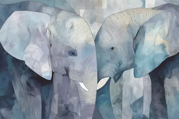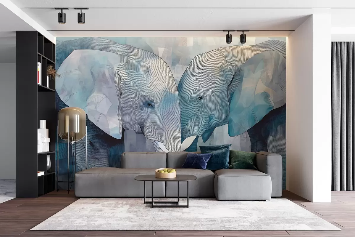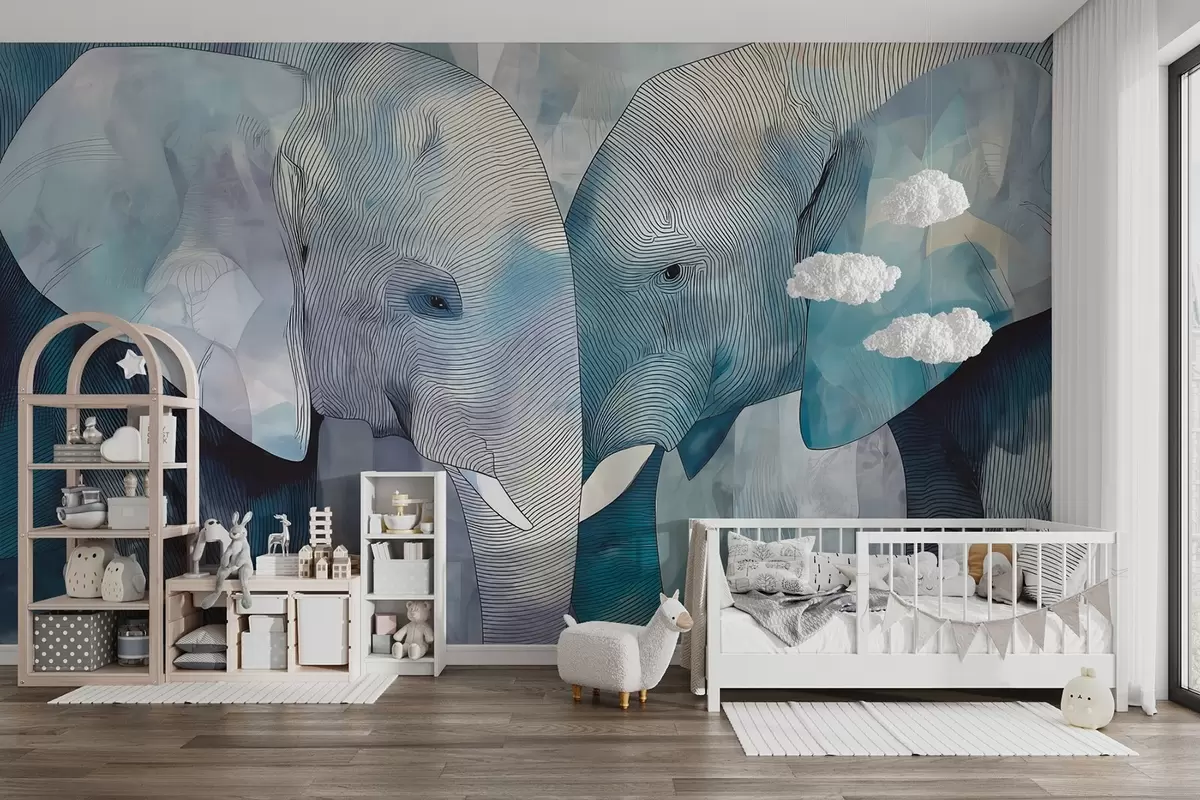 Carta da parati Simpatici elefanti blu in stile acquerello nr. w09098
