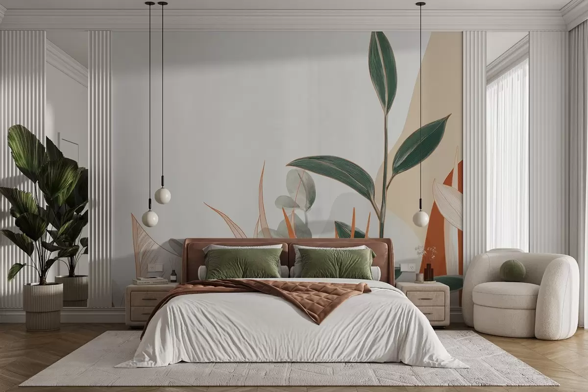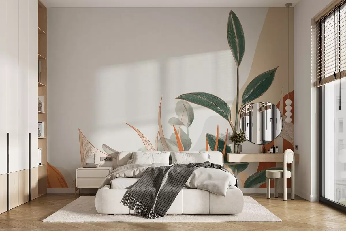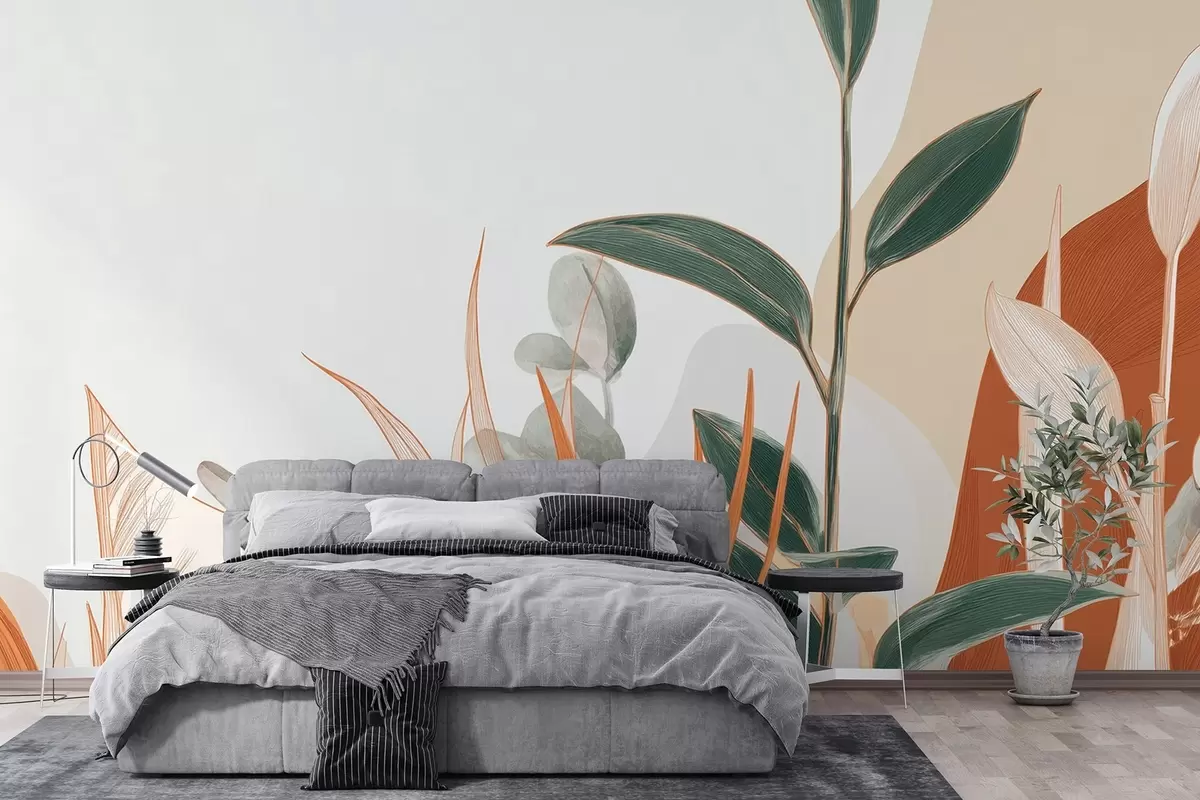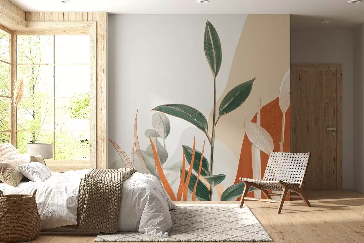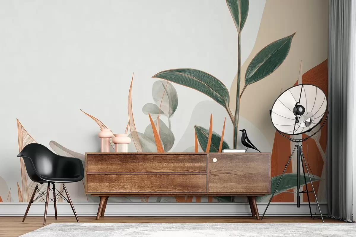 Carta da parati Foglie nei toni del beige e del verde nr. w09101