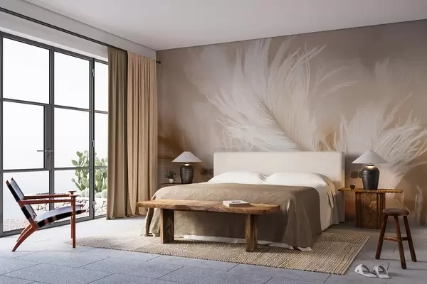Carta da parati Piume volanti su sfondo beige nr. w09102