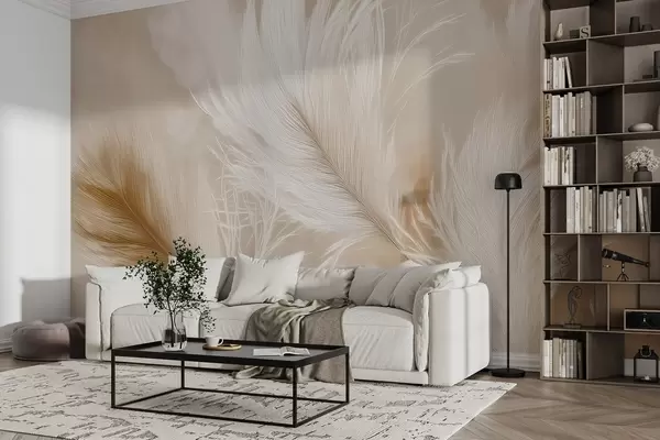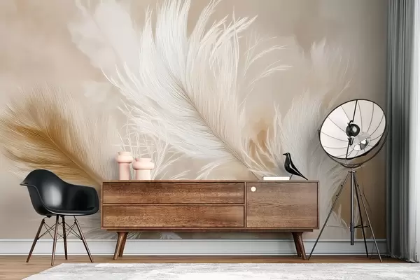Carta da parati Piume volanti su sfondo beige nr. w09102