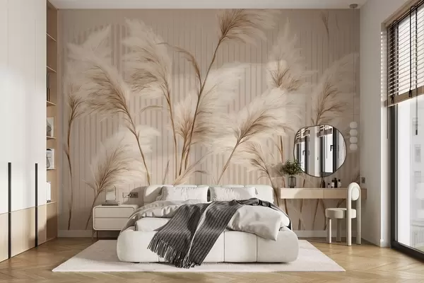 Carta da parati Erba della pampa su uno sfondo di linee nei toni del beige nr. w09104