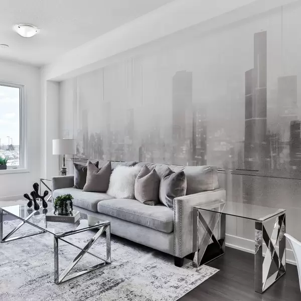 Carta da parati Paesaggio urbano astratto con edifici alti e strisce, nei toni del grigio e del bianco, che creano un effetto nebuloso nr. w09119