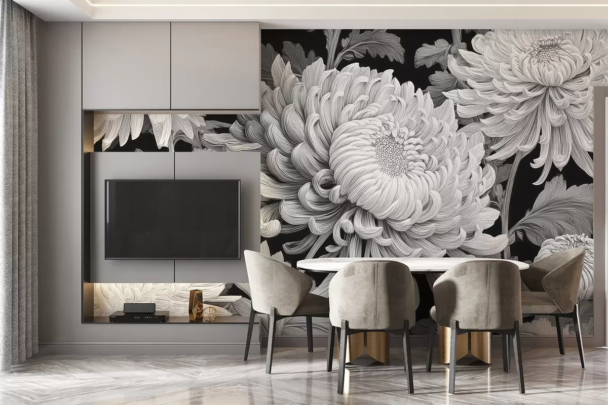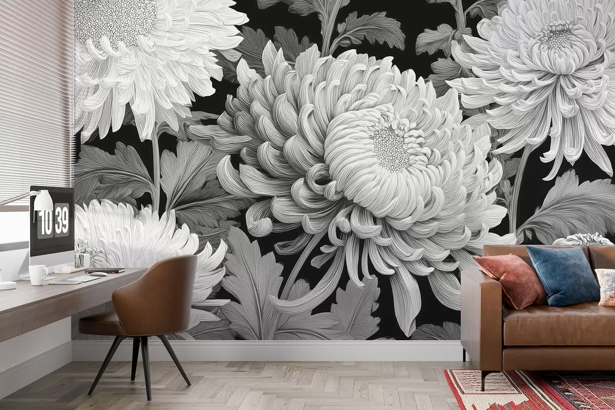 Carta da parati Grandi orchidee bianche e nere con foglie nr. w09125v1