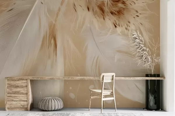Carta da parati Piume leggere nei toni caldi del beige e del bianco nr. w09153