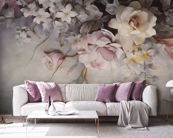 Carta da parati Grandi fiori appesi alla parete su uno sfondo di cemento nr. w09184