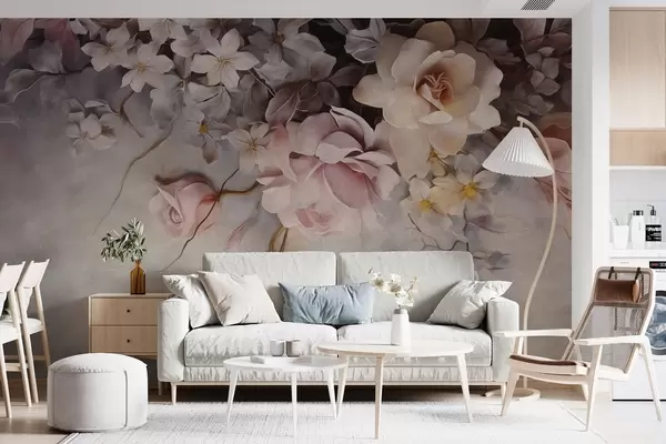 Carta da parati Grandi fiori appesi alla parete su uno sfondo di cemento nr. w09184