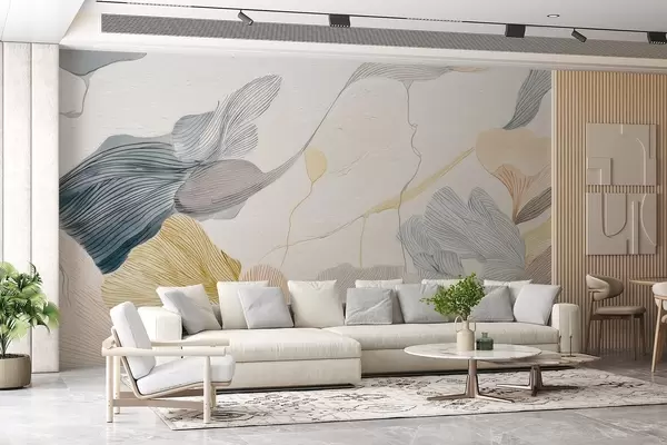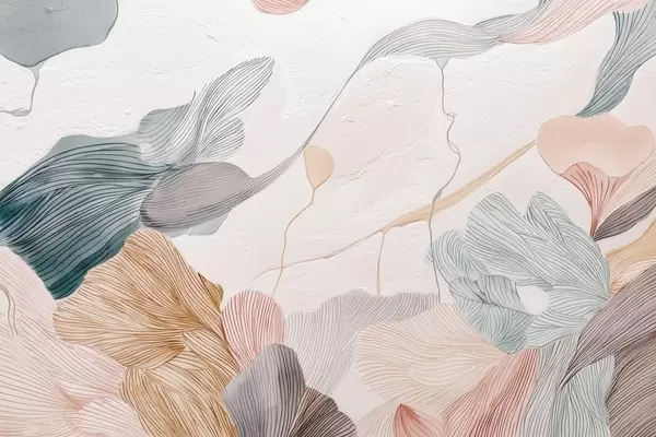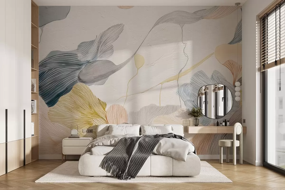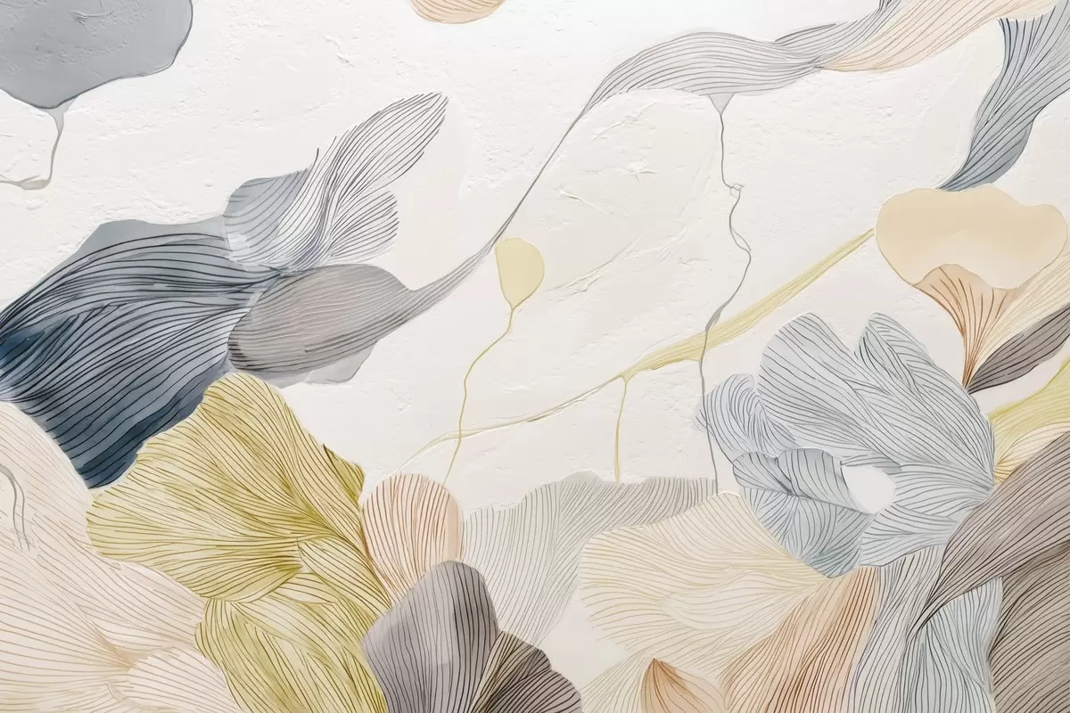 Carta da parati Foglie grafiche astratte in tonalità pastello calde e fredde nr. w09222v1
