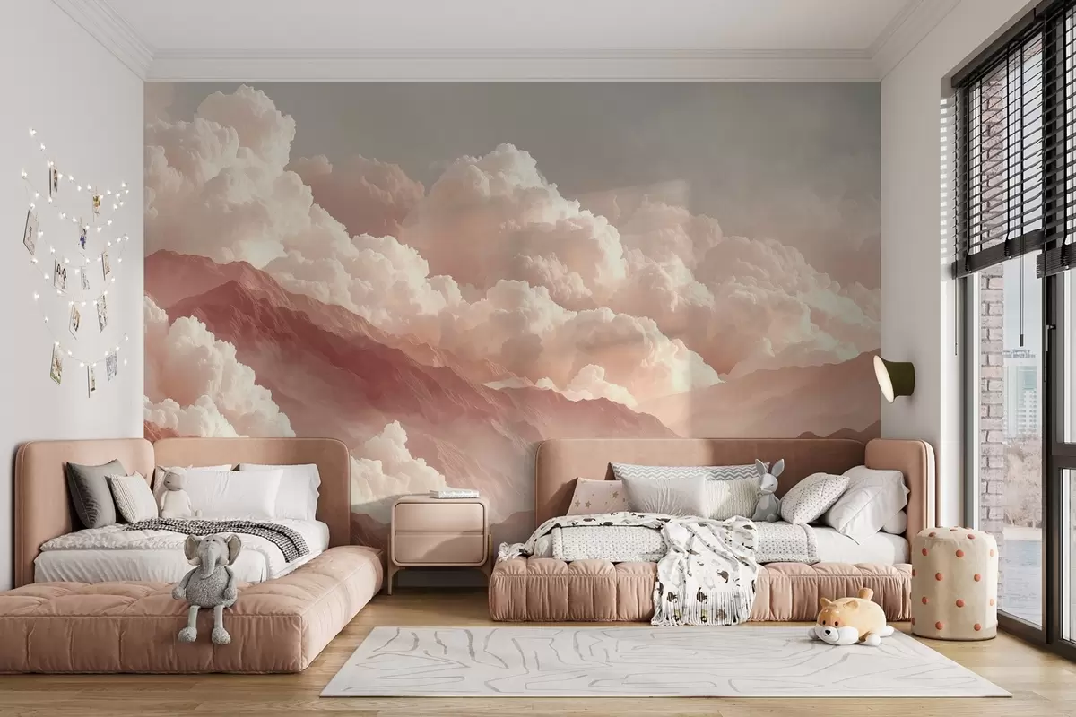 Carta da parati Alba calda sulle montagne con nuvole soffici nr. w09226