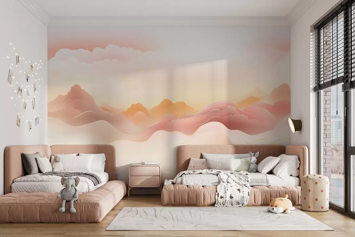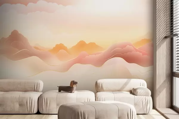 Carta da parati Montagne nebbiose sotto un'alba calda nr. w09242