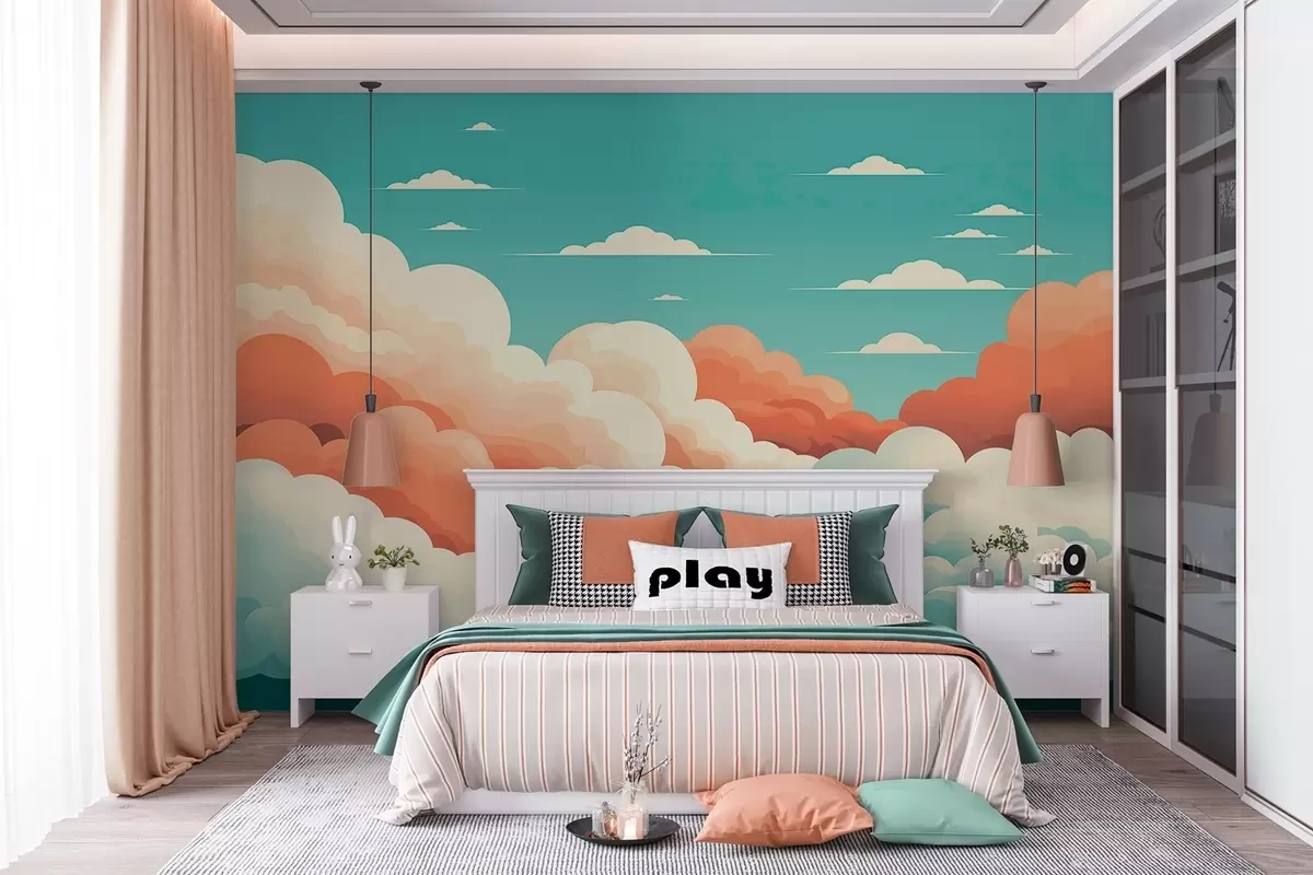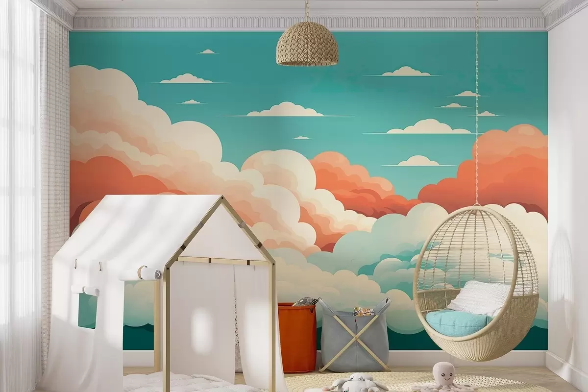 Carta da parati Nuvole stravaganti in stile cartone animato sotto un cielo azzurro nr. w09246