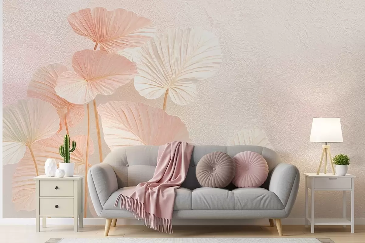 Carta da parati Eleganti foglie tropicali di grandi dimensioni di colore rosa delicato nr. w09252v1