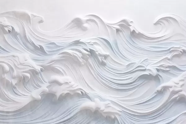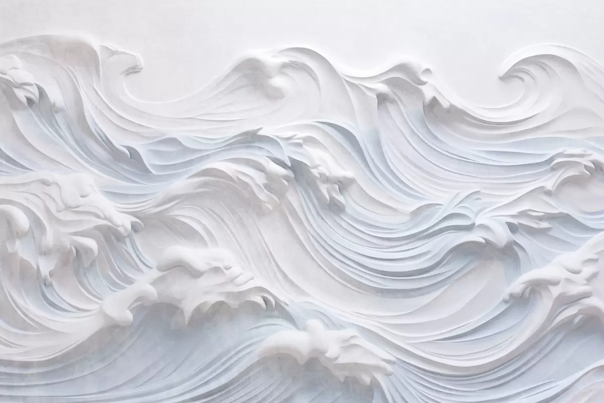 Carta da parati Onde oceaniche astratte testurizzate bianche e azzurre con schiuma, che scorrono da sinistra a destra, stampa dinamica e testurizzata nr. w09266