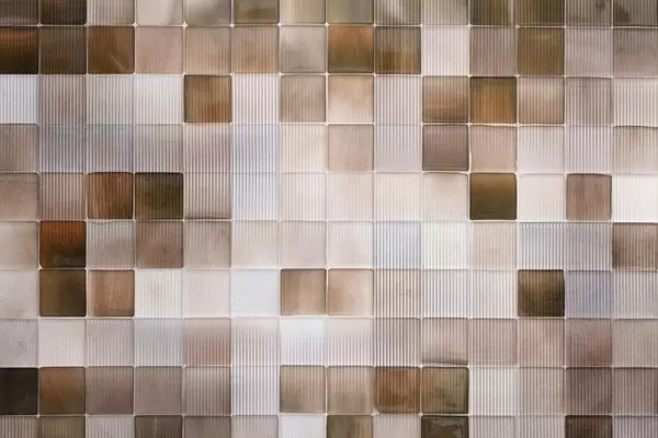 Carta da parati Piastrelle quadrate in pietra a mosaico nei toni del marrone, del beige e del bianco, con una texture astratta scanalata e rumorosa nr. w09269