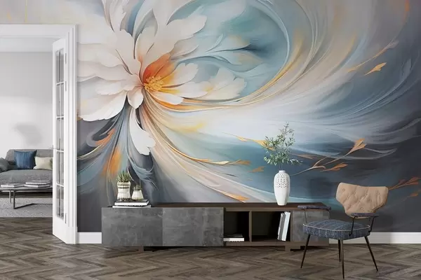 Carta da parati Fiore astratto nei toni tenui del blu e dell'arancio nr. w09270